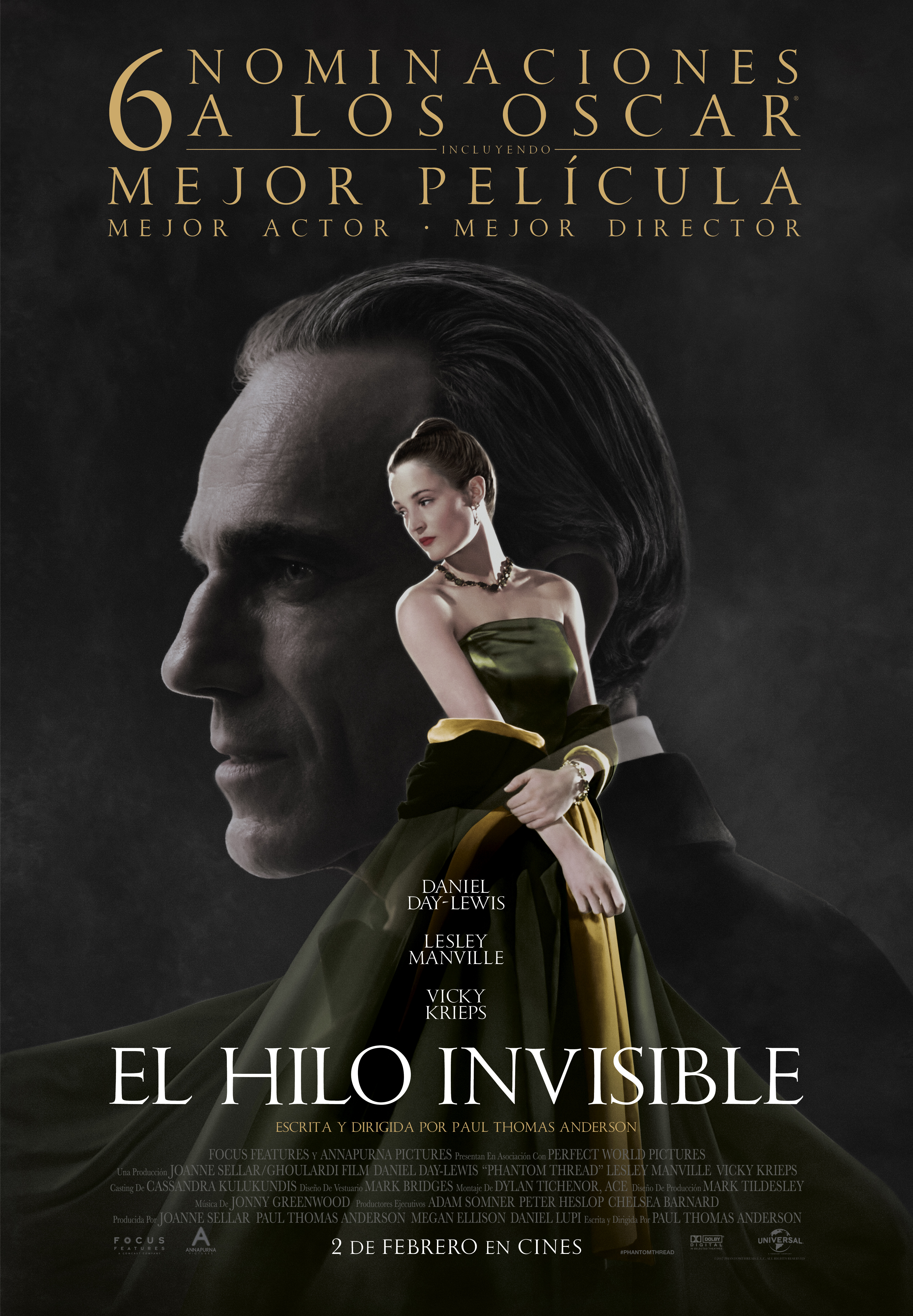 Ficha técnica | Título original: Phantom Thread. Dirección: Paul Thomas Anderson. Guión: Paul Thomas Anderson. Dir. Fotografía: Paul Thomas Anderson. BSO: Jonny Greenwood. Reparto: Daniel Day-Lewis, Vicky Krieps, Lesley Manville, Camilla Rutherford, Brian Gleeson, Julia Davis, Harriet Sansom Harris, Lujza Richter. Género: Drama. Duración: 131 mins. Año: 2017. País: Estados Unidos. Producción: Annapurna Pictures, Focus Features. Distribución en España: Universal Pictures International Spain.