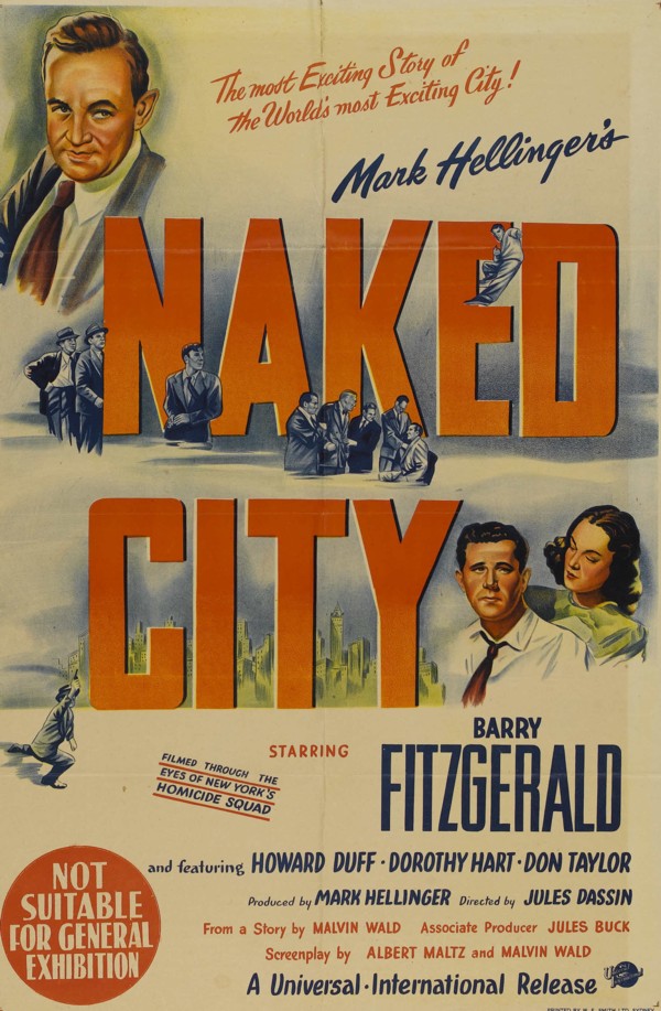 Título: The Naked City. Director: Jules Dassin. Guión: Albert Maltz, Malvin Wald (Historia: Malvin Wald). Año: 1948. Reparto: Barry Fitzgerald, Howard Duff, Dorothy Hart, Don Taylor, Frank Conroy, Ted de Corsia, House Jameson, Anne Sargent, Adelaide Klein, Grover Burgess, Tom Pedi, Enid Markey. Género: Cine Negro, Thriller, Policíaco.