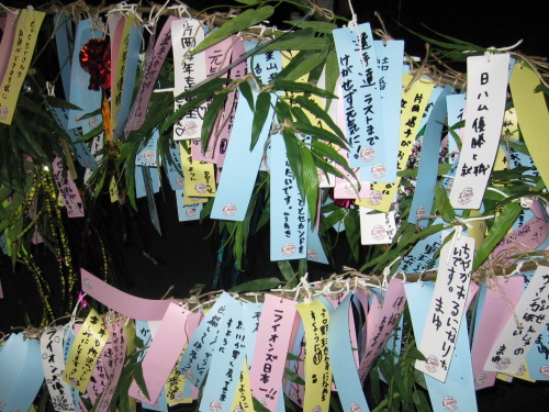Una de las tradiciones más populares es escribir deseos en tiras de papel de colorines llamadas tanzaku para después colgarlas en las ramas de los árboles de bambú. Tradicionalmente los colores de los tanzaku siempre son cinco (blanco, negro, amarillo, rojo y verde) y representan a los Cinco Elementos de la Naturaleza (agua, madera, fuego, tierra y metal). Antiguamente los deseos se escribían en forma de poemas.