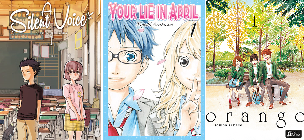 El 2015 nos está dando muy buenas licencias. Y sino que se lo digan a Milky Way Ediciones y a Tomodomo, que acaban de publicar tres mangas estupendos y de gran calidad que muchos lectores estábamos deseando ver en el mercado español. Esos títulos son: A Silent Voice, Your lie in April (ambas publicadas por Milky Way Ediciones) y Orange (Ediciones Tomodomo). Tres mangas con argumentos bastante distintos a los que estamos acostumbrados a ver por estos lares.