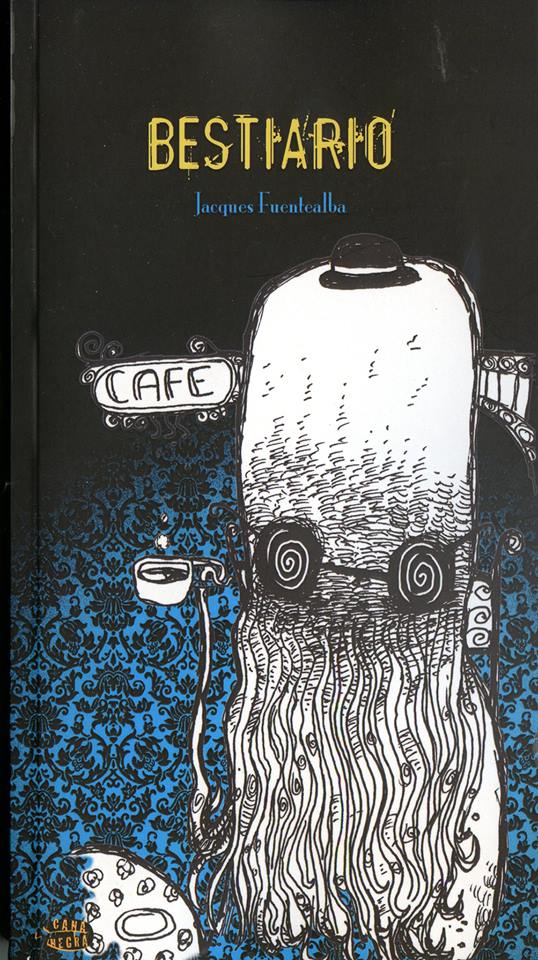 En Bestiario, de Jacques Fuentealba coexisten monstruos de dientes afilados que tratan de hacerse pasar por humanos, una entidad cósmica sin rumbo ni cabeza, que autoalimenta su mito, pirómanas y asesinos que negarián ser verdaderos monstruos, flautistas de la inexistencia, pesadillas lovecraftianas indicibles por ser tan horrendas (¿o absurdas?) y sueños de arena, como granos en la máquina de nuestras certezas.